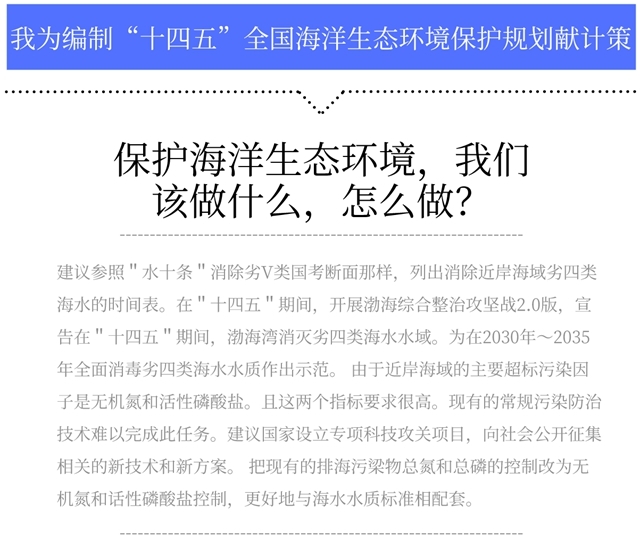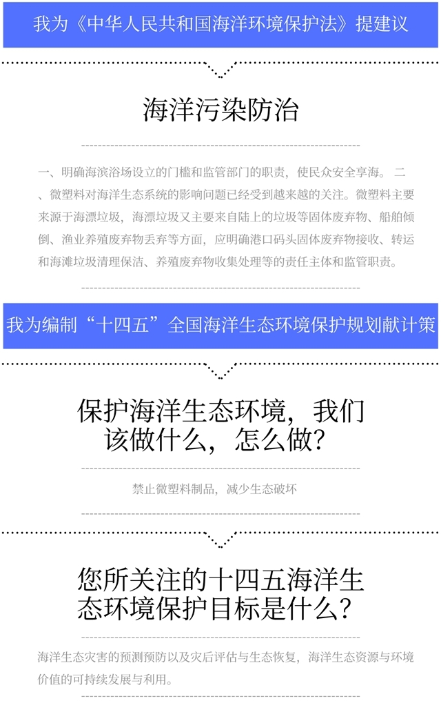 “我為海洋生態(tài)環(huán)境保護(hù)建言獻(xiàn)策”期待你的建言,也可以直接在下方留言框進(jìn)行互動(dòng)哦。