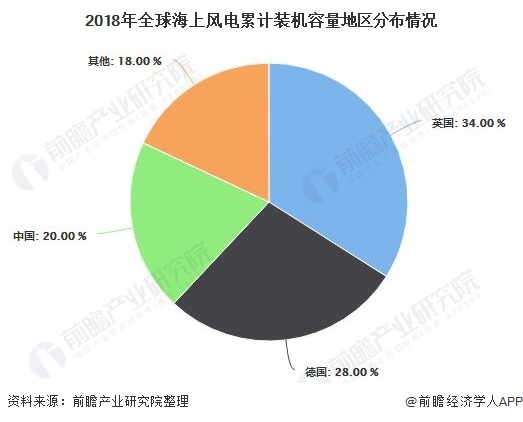 2018年中國的累計風電裝機量約占全球累計量的35.4%,其中陸上風電裝機量占全球陸上風電裝機總量的36%,新增的海上風電裝機量占比約為20%。