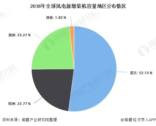 3、全球新增風電裝機容量呈下降態(tài)勢 2018年增量主要來自亞太地區(qū)