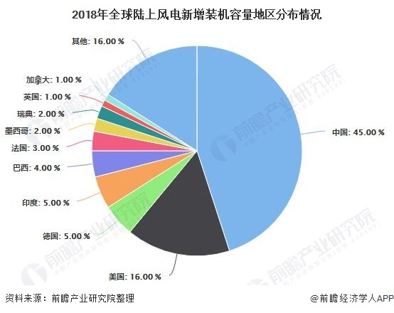 4、2018年中國新增風電裝機量約占全球45%