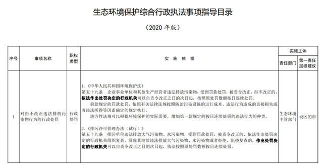 詳情點擊:《生態(tài)環(huán)境保護綜合行政執(zhí)法事項指導目錄(2020年版)》