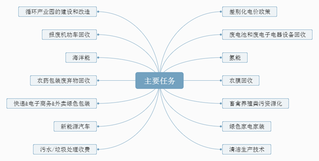 綠色生產(chǎn)和綠色消費囊括了社會生活的方方面面活動,主要任務進一步細分了這兩大板塊的內(nèi)容。其中,要圈起來的點包括但不僅限于