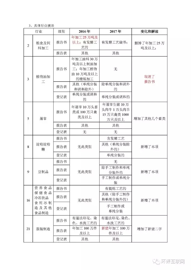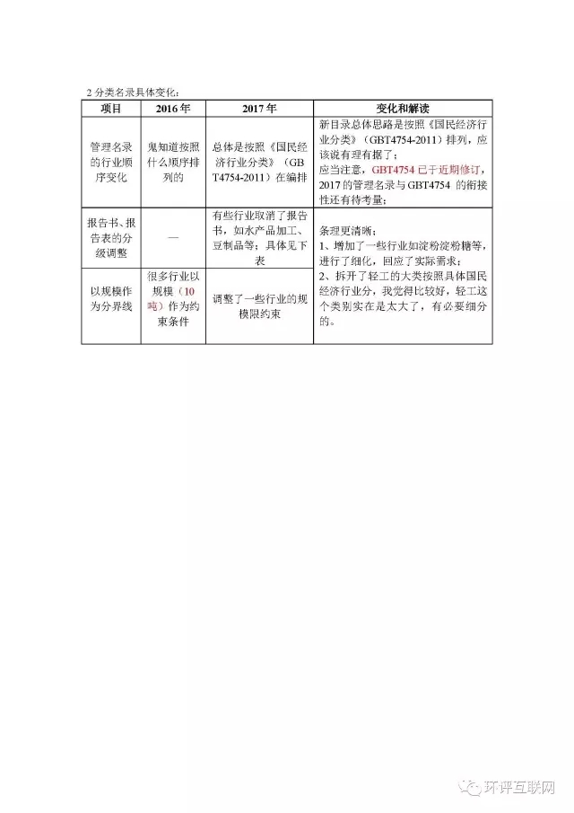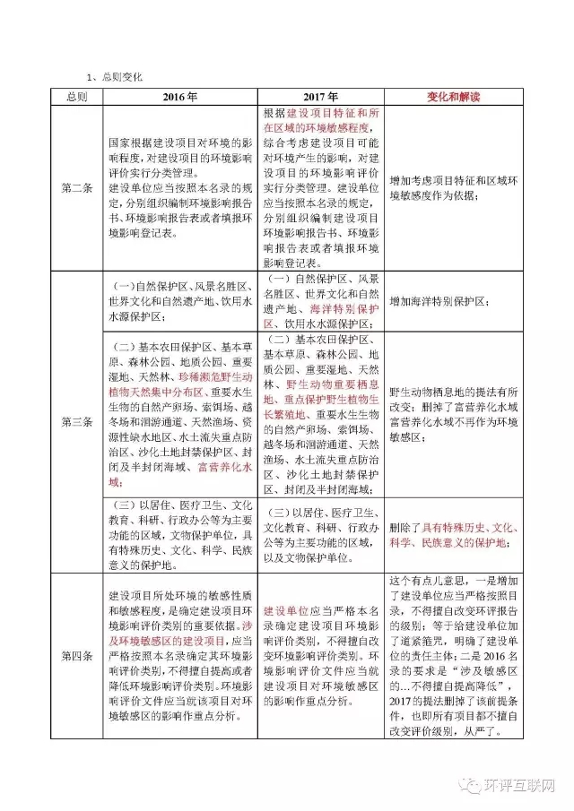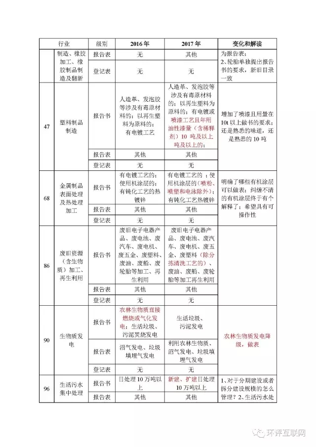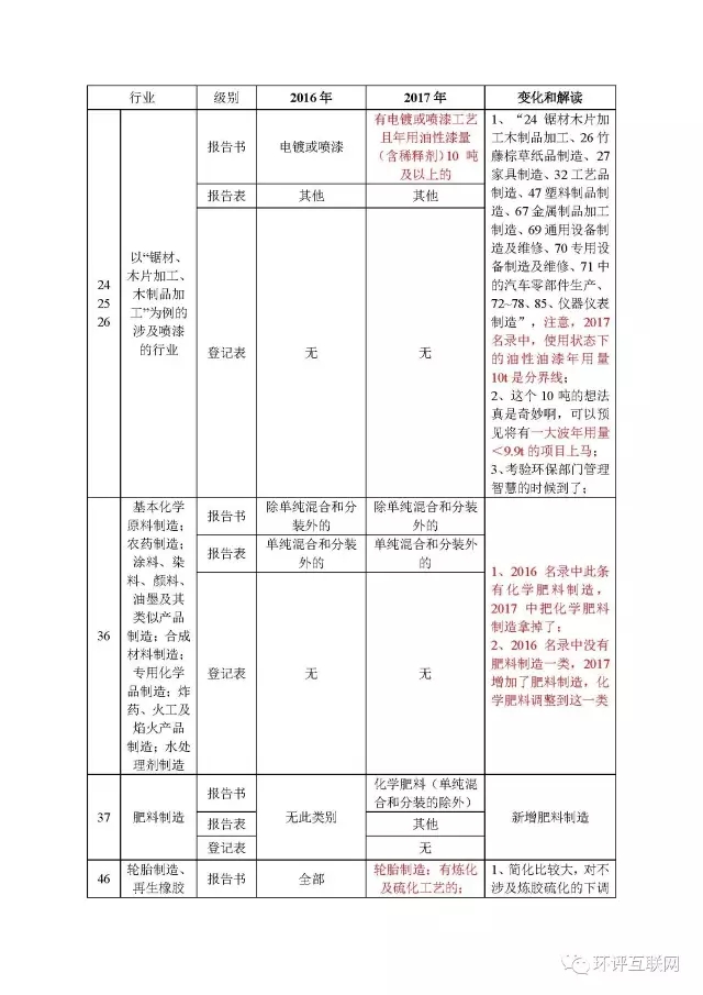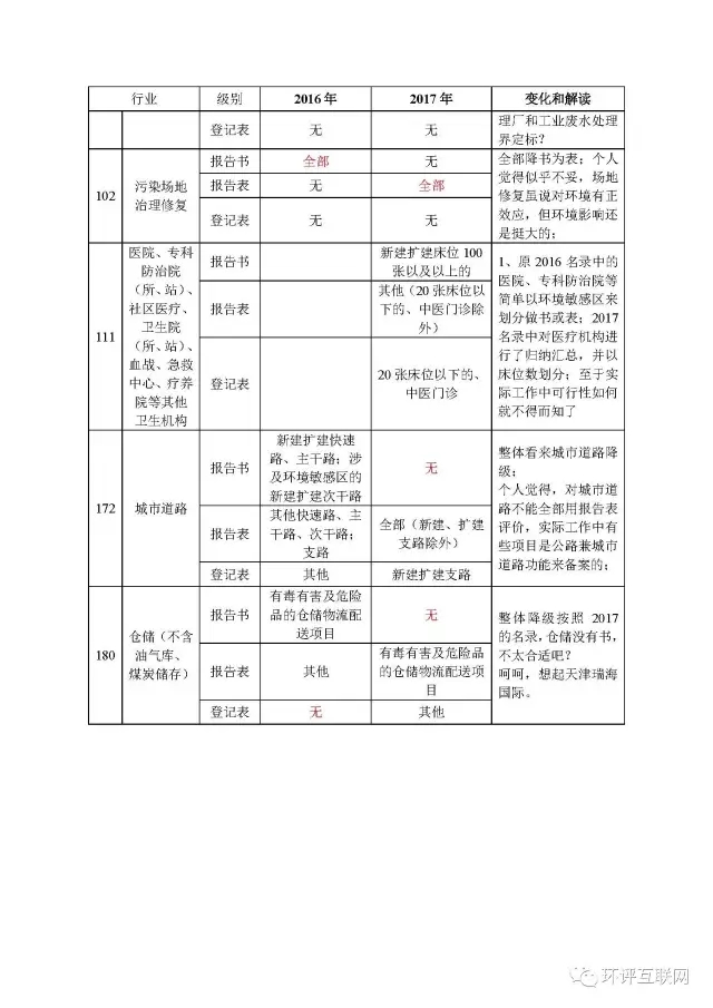 《建設項目分類管理名錄》2017版逐項PK2016版