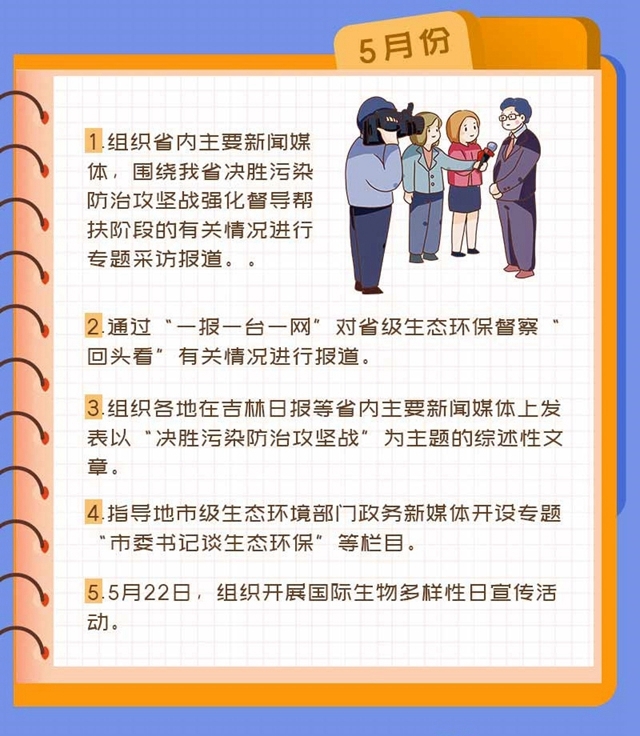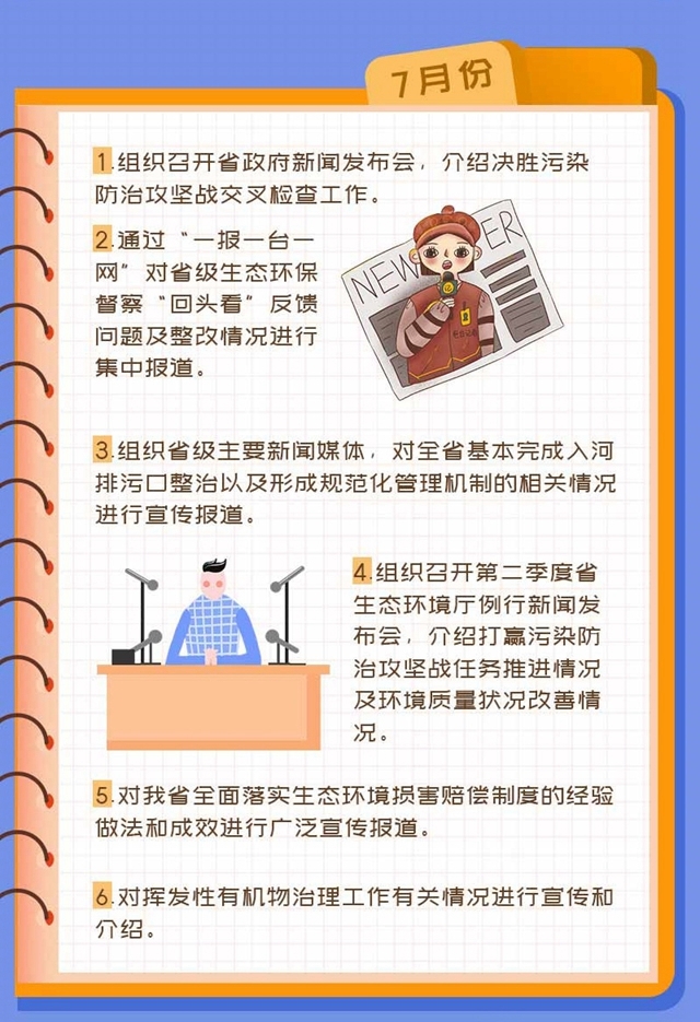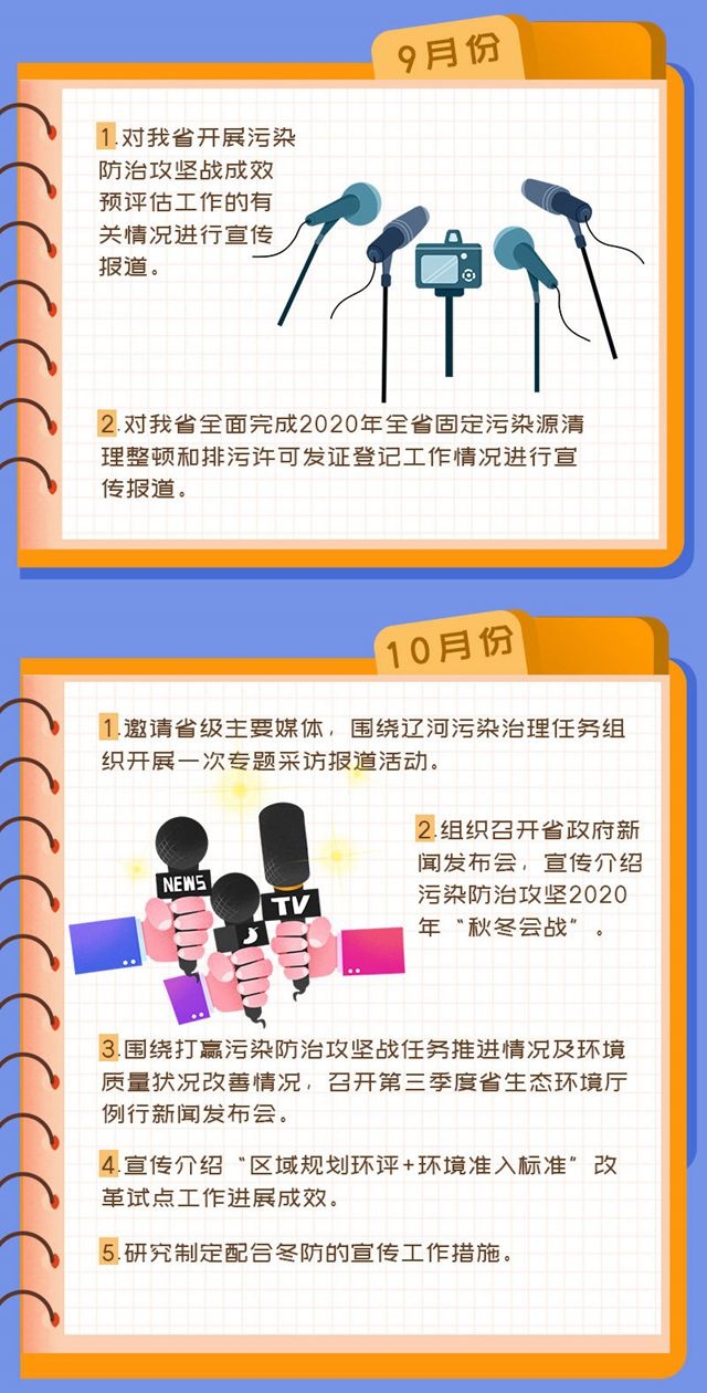 《工作計劃》緊扣攻堅戰(zhàn)實施方案重點任務,按照攻堅戰(zhàn)總施工圖和分項施工圖工作安排,緊隨形勢需要,緊盯短板問題,按月份時序部署了生態(tài)環(huán)保督察、“兩河一湖”整治、重污染天氣治理、生態(tài)問題整治、行政審批服務改革、典型宣傳等重點任務的宣傳計劃,明確了采取新聞發(fā)布、網(wǎng)絡新媒體推廣、專題和伴隨采訪等宣傳方式,強調了通過省級、國家級主要媒體渠道進行廣泛推廣,提出了責任、時限等方面的具體要求,為決勝2020污染防治攻堅戰(zhàn)營造濃厚的輿論氛圍。