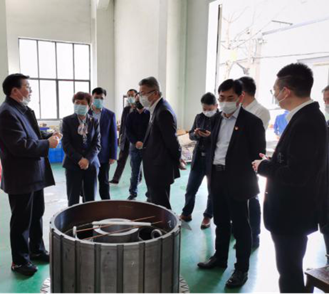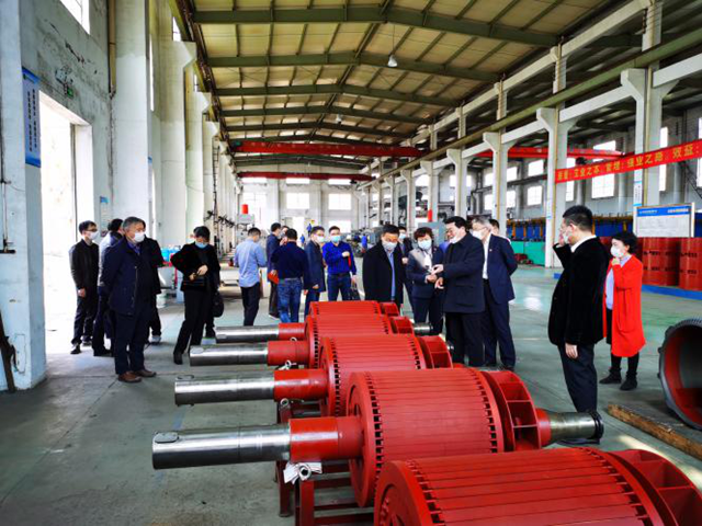 謝董一行參觀了公司的生產(chǎn)車(chē)間、測(cè)試車(chē)間,對(duì)永發(fā)機(jī)電的生產(chǎn)能力、技術(shù)水平、工藝流程進(jìn)行了詳細(xì)了解。高董首先對(duì)謝董一行的到來(lái)表示熱烈歡迎,向謝董一行匯報(bào)了永發(fā)公司目前業(yè)務(wù)開(kāi)展情況。在聽(tīng)完高董的介紹后,謝董對(duì)永發(fā)機(jī)電的研發(fā)能力和制造能力給予了充分肯定,她認(rèn)為,永發(fā)機(jī)電擁有五十余年的電機(jī)制造經(jīng)驗(yàn),尤其是目前不斷涉及的水利領(lǐng)域、軍工領(lǐng)域,創(chuàng)新研究的努力與成果值得贊賞!并表示省機(jī)電集團(tuán)會(huì)積極考慮與永發(fā)公司在風(fēng)電設(shè)備、軍工設(shè)備等領(lǐng)域進(jìn)行合作。