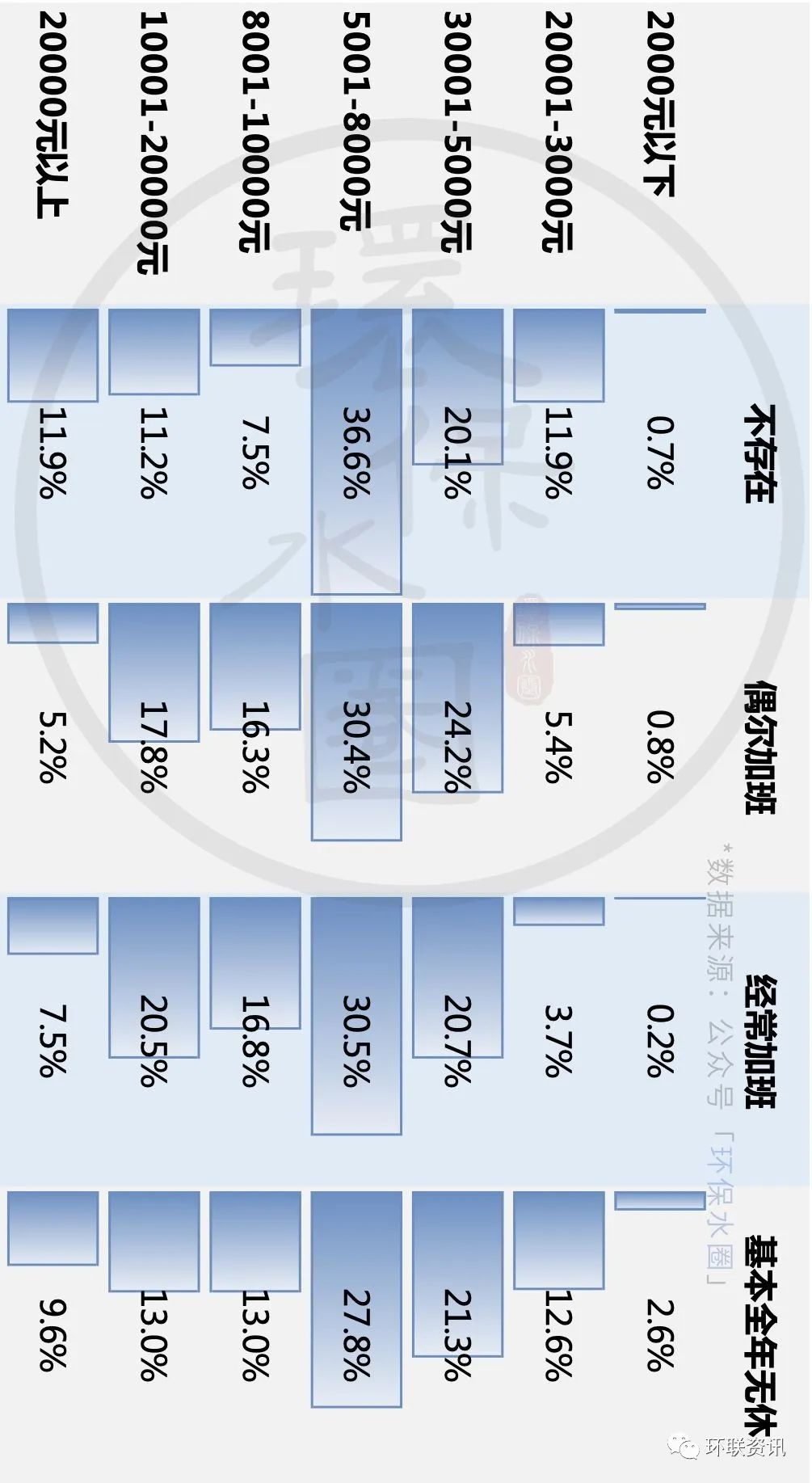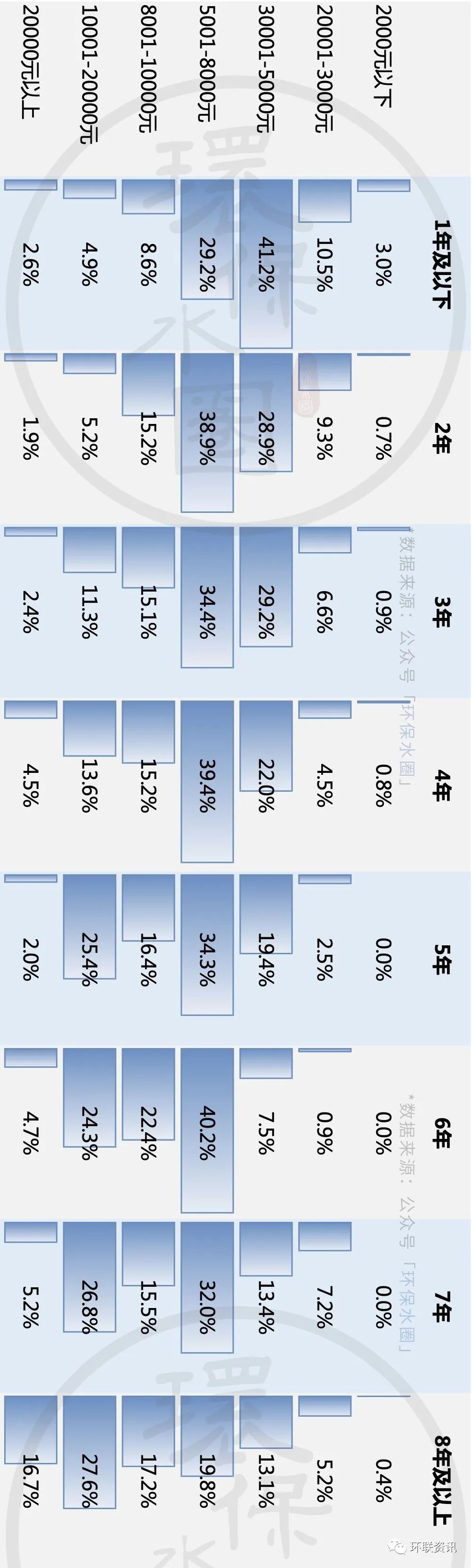 3. 注意這份報(bào)告不是應(yīng)屆畢業(yè)生的薪酬調(diào)研報(bào)告,而是針對(duì)環(huán)保行業(yè)現(xiàn)有從業(yè)者的薪酬調(diào)研,所千萬不要以為剛畢業(yè)就能拿到這份工資。從調(diào)研數(shù)據(jù)我們可以清晰的看到,70.7%參與調(diào)研的人,大多擁有3年以上工作經(jīng)驗(yàn),41%擁有6年以上工作經(jīng)驗(yàn),這從另外一個(gè)維度表明,微信公眾號(hào)「環(huán)保水圈」的訂閱號(hào)戶是一群大概率熱愛環(huán)保行業(yè)并且有自我提升習(xí)慣的從業(yè)者。4. 對(duì)于職場(chǎng)新人來說,這意味著進(jìn)入環(huán)保各細(xì)分行業(yè)龍頭企業(yè)或者具備較強(qiáng)技術(shù)研發(fā)實(shí)力的中小技術(shù)型企業(yè)將會(huì)是一種“坐高鐵”的體驗(yàn)。如果能力允許,干環(huán)保還是要優(yōu)先選上述類型公司,如果能力不允許,那就先找個(gè)地兒鍛煉能力,然后讓能力變得可以允許。5. 對(duì)于資深從業(yè)者來說,環(huán)保行業(yè)已進(jìn)入大洗牌尾聲,大企業(yè)用資金戰(zhàn)拿下的天下,最終都要靠人才來守,接下來的人才戰(zhàn)將會(huì)是環(huán)保企業(yè)在環(huán)保行業(yè)能持續(xù)取得勝利并擴(kuò)大戰(zhàn)果的制勝法寶。環(huán)保行業(yè)的的人才的薪酬在接下來三年將會(huì)是水漲船高,不過要注意是,這里指的人才是具備較強(qiáng)競(jìng)爭(zhēng)力的環(huán)保從業(yè)者,豐富的經(jīng)驗(yàn)和扎實(shí)的專業(yè)能力是其中的關(guān)鍵。看完報(bào)告,有任何想法,歡迎留言,歡迎轉(zhuǎn)發(fā)!