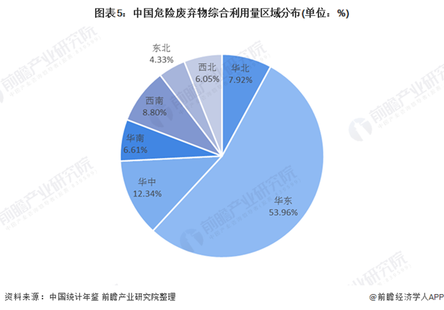 我國危廢綜合利用能力快速提升,華東地區(qū)占據(jù)危廢綜合利用量半壁江山