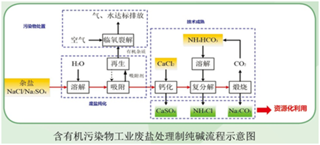 利用吸附-脫附技術(shù)富集工業(yè)廢鹽溶液中的有機(jī)污染物,再通過臨氧裂解技術(shù)實(shí)現(xiàn)達(dá)標(biāo)排放,凈化后的鹽溶液進(jìn)入制堿工藝,制堿工藝技術(shù)成熟,從而實(shí)現(xiàn)工業(yè)廢鹽的資源化利用。