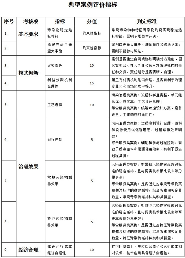 (三) 綜合考慮案例的模式創(chuàng)新、治理效果、經(jīng)濟(jì)合理、管理規(guī)范等因素進(jìn)行評估。根據(jù)評估結(jié)果,擇優(yōu)在相關(guān)信息平臺(tái)進(jìn)行公示。公示無異議后將作為“工業(yè)園區(qū)環(huán)境污染第三方治理典型案例(第三批)”予以推薦。