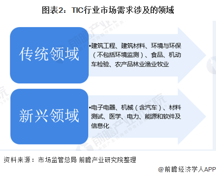 根據(jù)市場(chǎng)監(jiān)管總局的劃分,TIC市場(chǎng)的檢測(cè)需求來(lái)源于傳統(tǒng)領(lǐng)域和新興領(lǐng)域。傳統(tǒng)領(lǐng)域主要包括建筑工程、建筑材料、環(huán)境與環(huán)保(不包括環(huán)境監(jiān)測(cè))、食品、機(jī)動(dòng)車檢驗(yàn)、農(nóng)產(chǎn)品林業(yè)漁業(yè)牧業(yè);新興領(lǐng)域主要包括電子電器、機(jī)械(含汽車)、材料測(cè)試、醫(yī)學(xué)、電力、能源和軟件及信息化。