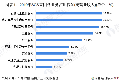 再以全球TIC行業(yè)的龍頭機(jī)構(gòu)為例,2019年,瑞士SGS集團(tuán)的業(yè)務(wù)板塊中,創(chuàng)收能力排名前五的業(yè)務(wù)中,涉及傳統(tǒng)領(lǐng)域的石油化工檢測(cè)服務(wù)、農(nóng)產(chǎn)食品及生命科學(xué)服務(wù)和礦產(chǎn)服務(wù),合計(jì)占比全年?duì)I業(yè)收入的比重超40%。而在法國(guó)BV集團(tuán)的業(yè)務(wù)板塊中,涉及傳統(tǒng)領(lǐng)域的業(yè)務(wù)營(yíng)收占比也接近50%。