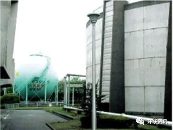 森崎水回收中心東部還設(shè)有有四個消化罐,用來從有機污泥成分中產(chǎn)生甲烷氣體,這將減少最終的污泥體積。每個消化罐內(nèi)徑28米,深度19.5米(容積12000立方米),消化溫度約為50攝氏度。
