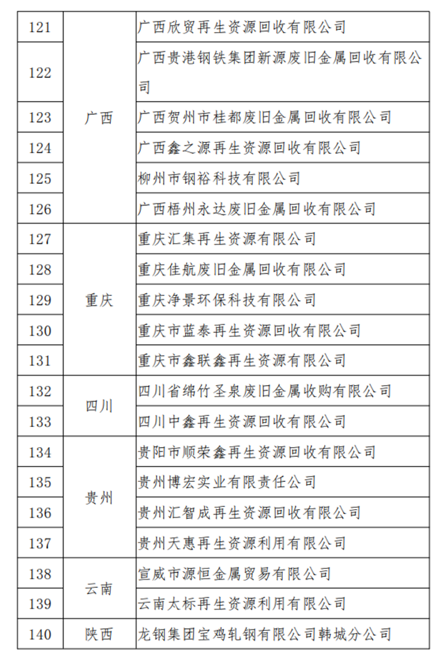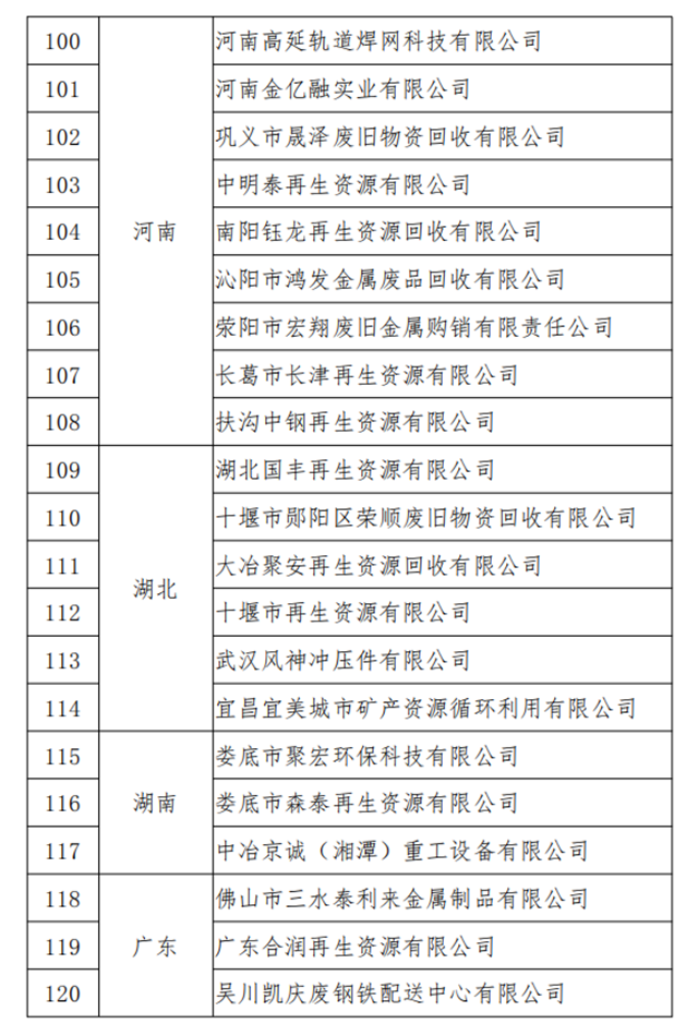 原標(biāo)題:符合《廢鋼鐵加工行業(yè)準(zhǔn)入條件》企業(yè)名單(第七批)、符合《廢塑料綜合利用行業(yè)規(guī)范條件》企業(yè)名單(第三批)以及撤銷(xiāo)《廢鋼鐵加工行業(yè)準(zhǔn)入條件》公告的企業(yè)名單