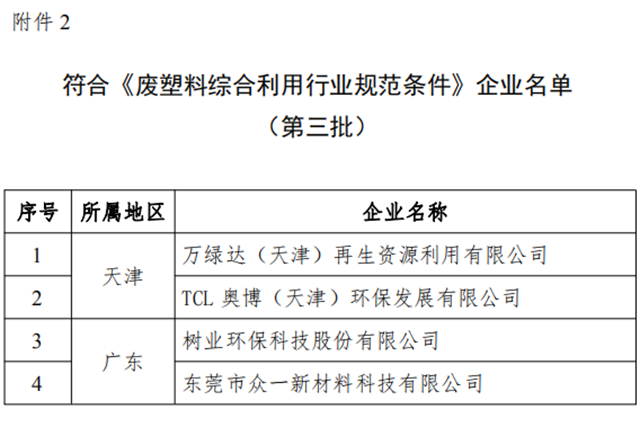2.符合《廢塑料綜合利用行業(yè)規(guī)范條件》企業(yè)名單(第三批)