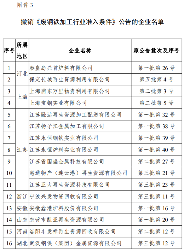 3.撤銷(xiāo)《廢鋼鐵加工行業(yè)準(zhǔn)入條件》公告的企業(yè)名單