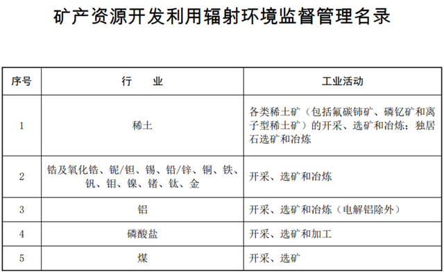 關(guān)于印發(fā)《礦產(chǎn)資源開發(fā)利用輻射環(huán)境監(jiān)督管理名錄》的通知(征求意見稿)