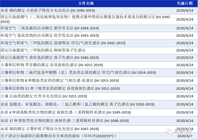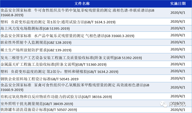 2020年4月,有多部環(huán)境標(biāo)準(zhǔn)、地方文件等將要實施,具體有哪些呢?見下文: