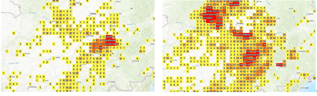 東北地區(qū)3月30日-4月1日(左)、4月12-14日(右)衛(wèi)星火點(diǎn)數(shù)量