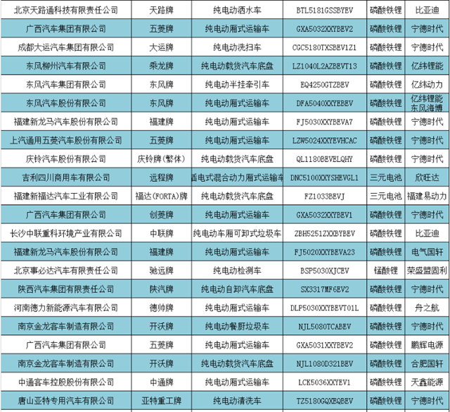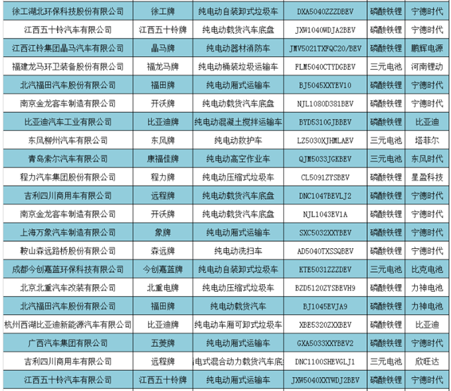 在申報的133款新能源專用車產(chǎn)品中,磷酸鐵鋰電池車型有118款、占比89%;三元電池車型14款、錳酸鋰電池車型1款。