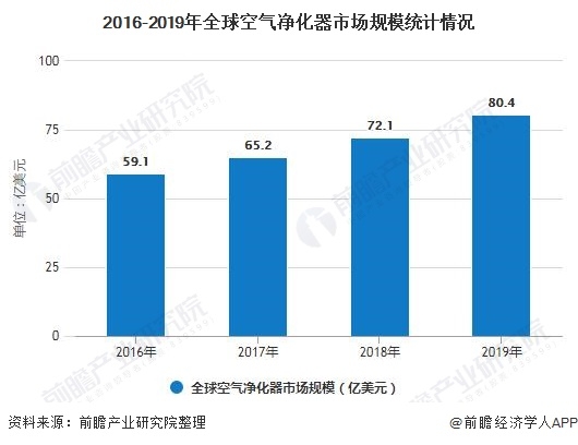 2、2019年全球空氣凈化器市場(chǎng)規(guī)模超80億美元