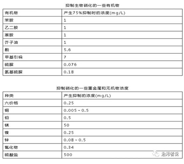 下表羅列了抑制生物硝化的一些污染物質(zhì),需要注意的是這些污染物質(zhì)在污水廠的化驗(yàn)室的條件下,大部分是無(wú)法化驗(yàn)的,也就造成了污水廠的管理困境,通過(guò)常規(guī)項(xiàng)目化驗(yàn),無(wú)法確定進(jìn)水發(fā)生異常,但是系統(tǒng)受到毀滅性的沖擊,這需要污水廠在這方面采取相應(yīng)的措施來(lái)應(yīng)對(duì)這種問(wèn)題。比如根據(jù)廠內(nèi)總停留時(shí)間,留存超出總停留時(shí)間24小時(shí)以上的進(jìn)水水樣(如果具有24小時(shí)自動(dòng)取樣裝置,可以留存更細(xì)的分時(shí)段水樣),比如廠內(nèi)總停留時(shí)間為30小時(shí),4月15日的進(jìn)水水樣應(yīng)留存到30+24=54小時(shí)以后,也就是4月17日以后,這樣可以在出水出現(xiàn)異常以后,及時(shí)將留存水樣送往具備化驗(yàn)?zāi)芰Φ牡谌綑z測(cè)機(jī)構(gòu)進(jìn)行檢測(cè),以發(fā)現(xiàn)異常污染物質(zhì),作為生產(chǎn)異常的佐證依據(jù)。