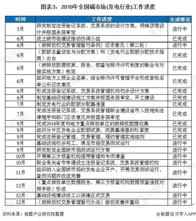 全國碳市場自2017 年底啟動以來,已經(jīng)走過了兩年的時間。按照《方案》的部署,2018 年為基礎(chǔ)建設(shè)期,主要進(jìn)行碳市場的基礎(chǔ)建設(shè)工作,包括建立健全制度體系、建設(shè)基礎(chǔ)支撐系統(tǒng)、開展能力建設(shè)等。2019年為模擬運(yùn)行期,主要開展發(fā)電行業(yè)配額模擬交易。