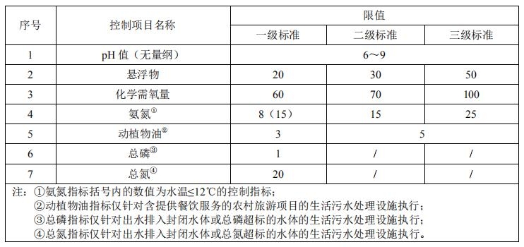 2)農(nóng)村生活污水處理設(shè)施進出水水質(zhì)標準