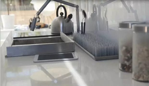 鳥巢溫控器可以讓內(nèi)部始終保持著適合人體舒適的溫度,Amazon Echo則是實(shí)現(xiàn)智能家居用聲音控制家居用品的智能音箱,能實(shí)現(xiàn)房子的語(yǔ)音控制和智能化,SageGlass制造的特殊玻璃能能根據(jù)室外陽(yáng)光強(qiáng)度來(lái)遮陰,這樣就不需要百葉窗了,KASITA還配備了PHILIPS色調(diào)燈光,可以通過(guò)app控制色溫,讓房間光線配合人的需要。