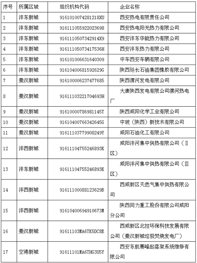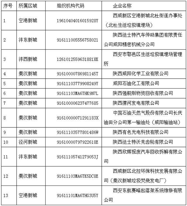 西咸新區(qū)2020年重點(diǎn)排污單位名錄