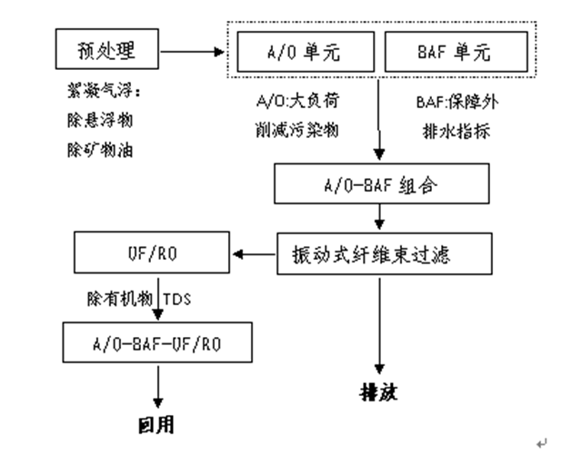 經(jīng)過研究,遼寧省環(huán)境科學(xué)研究院成功研發(fā)了A/O-BAF-UF-RO 化工綜合有機(jī)廢水回用技術(shù)。他們利用A/O(缺氧/好氧)工藝調(diào)整污水水質(zhì),降解有機(jī)污染物,脫除部分氮磷,利用BAF(曝氣生物濾池)保障外排出水水質(zhì),通過雙膜法(UF-RO)去除TDS(溶解性固體)等污染物,實(shí)現(xiàn)回用鍋爐或冷卻水目標(biāo)。