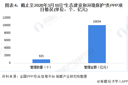 PPP(公私合營)模式是固廢處理項(xiàng)目的主要運(yùn)營模式之一。根據(jù)全國PPP綜合信息平臺(tái)項(xiàng)目管理庫數(shù)據(jù)顯示,截止至2020年3月10日,“生態(tài)建設(shè)和環(huán)境保護(hù)”類項(xiàng)目數(shù)量為925個(gè),數(shù)量排名各類項(xiàng)目中第三名;項(xiàng)目金額為1萬億元,排名所有項(xiàng)目中第4名??梢?,包括固廢處理項(xiàng)目在內(nèi)的生態(tài)環(huán)保在PPP項(xiàng)目中依然占據(jù)關(guān)鍵地位。