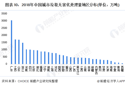 從無害化處理區(qū)域分布來看,我國各個(gè)區(qū)域之間有較大的區(qū)別。2018年,北京、上海、江蘇、浙江、安徽、湖北、湖南、廣西、海南以及重慶等地均已實(shí)現(xiàn)生活垃圾全面無害化處理。