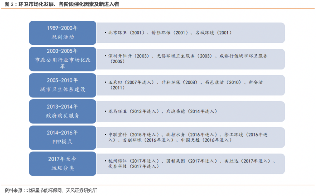 我國環(huán)衛(wèi)服務(wù)產(chǎn)業(yè)從建國以來經(jīng)歷了三個發(fā)展階段: