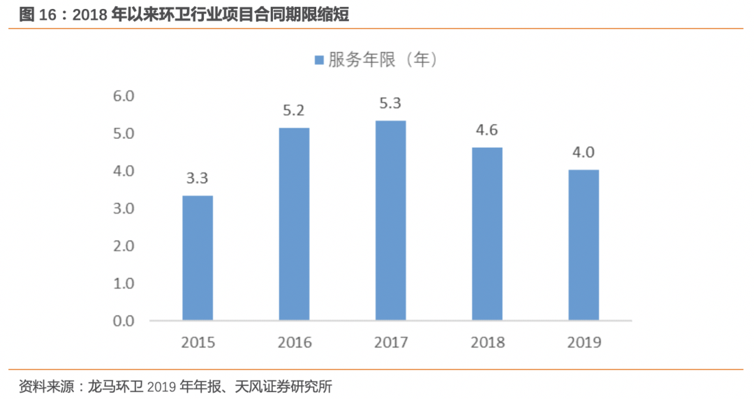 環(huán)衛(wèi)服務(wù)按照政府招標(biāo)模式一般分為政府購買服務(wù)或PPP兩類,政府購買服務(wù)一般運(yùn)營期限較短,約3-5年;PPP模式的環(huán)衛(wèi)項(xiàng)目一般體量較大,運(yùn)營期限約15-30年。