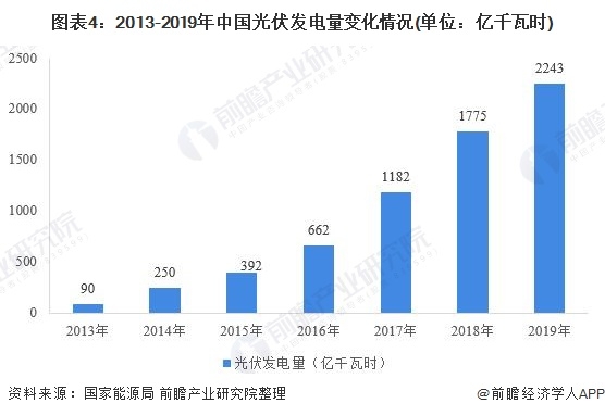 2019年全國光伏發(fā)電量達2243億千瓦時,同比增長26.3%,光伏利用小時數1169小時,同比增長54小時。