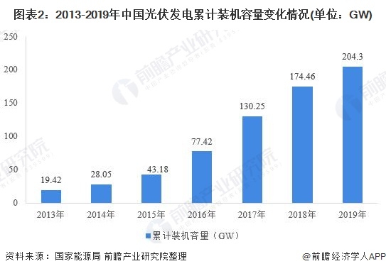 累計裝機容量方面,據國家能源局統(tǒng)計數據顯示,2013年以來,我國光伏發(fā)電累計裝機容量增長迅速。2013年,全國光伏發(fā)電累計裝機容量僅為19.42GW,到2019年已經增長至204.3GW。2013-2019年,全國光伏發(fā)電累計裝機容量實現超10倍增長。