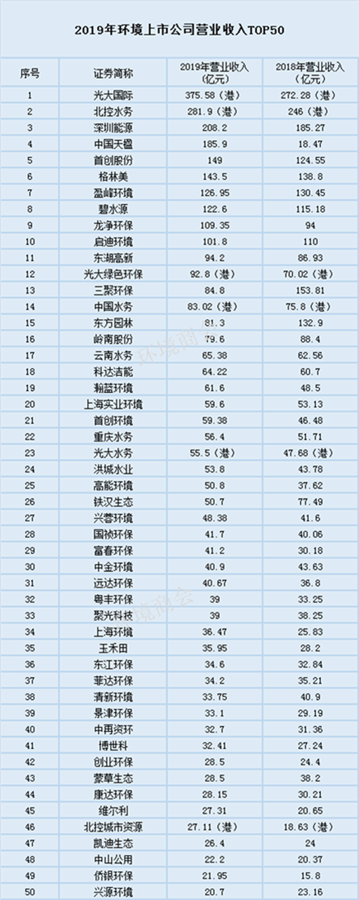 109家環(huán)境上市公司2019年報(bào)盤點(diǎn)