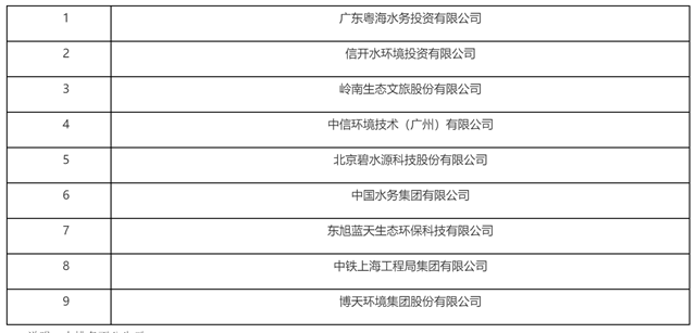 中國水網(wǎng)發(fā)現(xiàn),該項目于2019年曾經(jīng)歷過一次資格預(yù)審。2019年11月29日評審結(jié)果顯示,以下9家企業(yè)入圍(排名不分先后),后該項目宣布廢標(biāo)并重新招標(biāo)。
