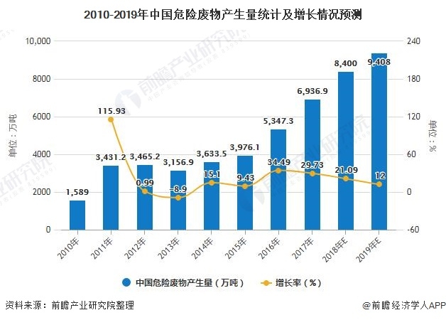 2、2020年中國危廢產生量預計突破1億噸,危廢處置向深度資源化發(fā)展