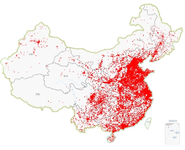 圖1 2019年全國(guó)環(huán)保舉報(bào)點(diǎn)位分布圖