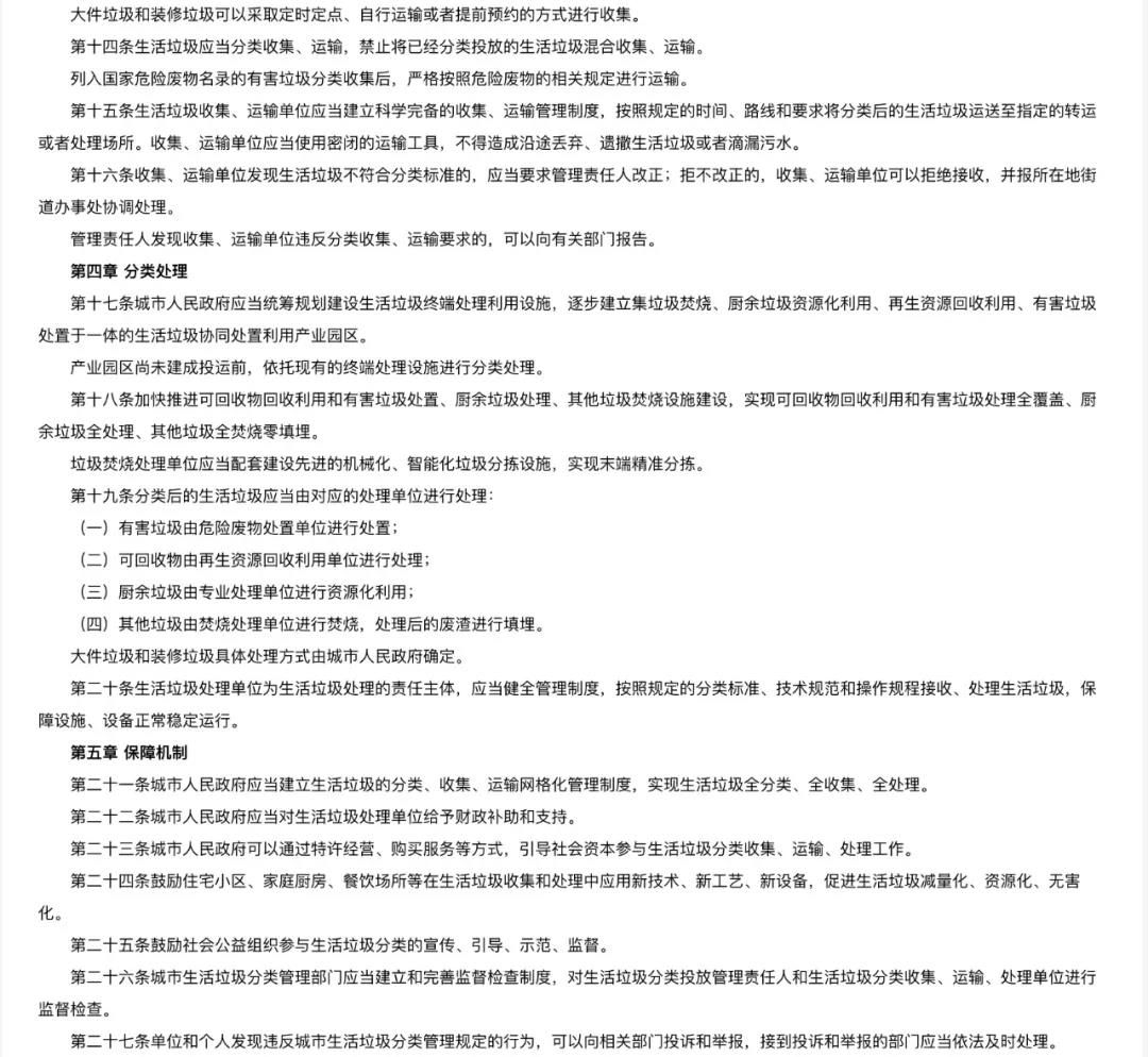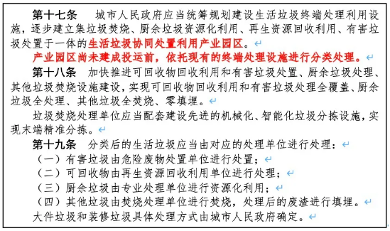 但在全省范圍內(nèi)來看,多數(shù)地級市固廢處理“本底值”水平較弱,暫未建立完善的分類垃圾處理設(shè)施體系,靜脈產(chǎn)業(yè)園規(guī)劃多數(shù)仍未開展。因此本規(guī)定考慮到各地實(shí)際情況,結(jié)合垃圾分類最“底層”的初心要求——提高無害化水平,對暫無條件的地區(qū)以現(xiàn)有處置設(shè)施為基準(zhǔn),在加快建立完善各類處置設(shè)施,提供資源化水平的同時(shí),首先確保分類垃圾得以無害化處理。