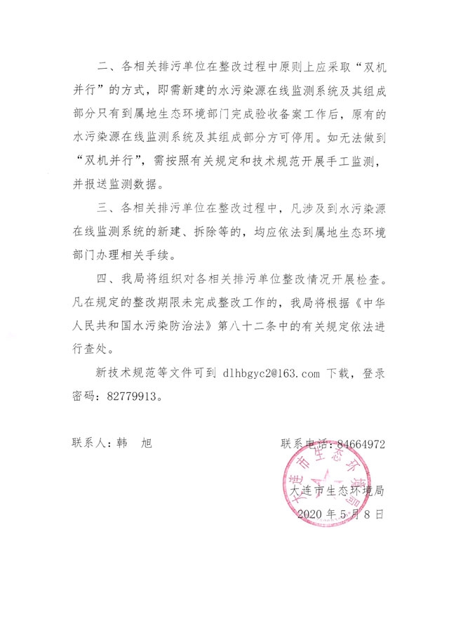 為了確保我市水污染源在線監(jiān)測系統(tǒng)按新技術(shù)規(guī)范建設(shè)、安裝、調(diào)試及運(yùn)行,現(xiàn)就全面執(zhí)行新技術(shù)規(guī)范的相關(guān)要求通知如下: