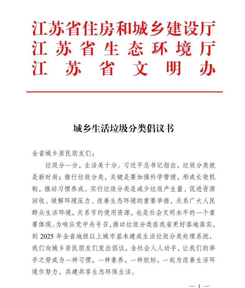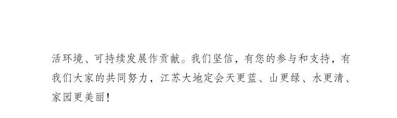 垃圾分類(lèi)新時(shí)尚,美好生活新開(kāi)始。讓我們攜起手來(lái),齊出一份力、共擔(dān)一份責(zé),垃圾分類(lèi),綠色家園,從我做起,用我們的行動(dòng)感召家人、朋友、身邊的人參與垃圾分類(lèi),一起為改善生活環(huán)境、可持續(xù)發(fā)展作貢獻(xiàn)。我們堅(jiān)信,有您的參與和支持,有我們大家的共同努力,江蘇大地定會(huì)天更藍(lán)、山更綠、水更清、家園更美麗!
