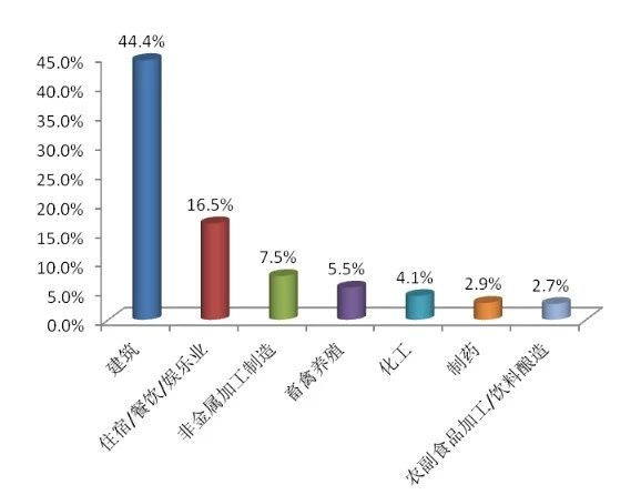 從行業(yè)類型來看,4月公眾反映最集中的行業(yè)為建筑業(yè),占44.4%,其次為住宿餐飲娛樂業(yè)和非金屬加工制造業(yè),分別占16.5%和7.5%。其中,建筑業(yè)舉報占比環(huán)比下降0.8個百分點,住宿餐飲娛樂業(yè)、非金屬加工制造業(yè)占比環(huán)比分別上升4.0個百分點和1.4個百分點,畜禽養(yǎng)殖業(yè)占比環(huán)比下降2.8個百分點。