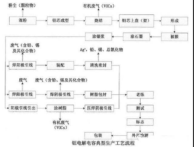 有機(jī)介質(zhì)電容器紙涂漆、電容器表面涂覆處理時(shí)有VOCs廢氣產(chǎn)生。