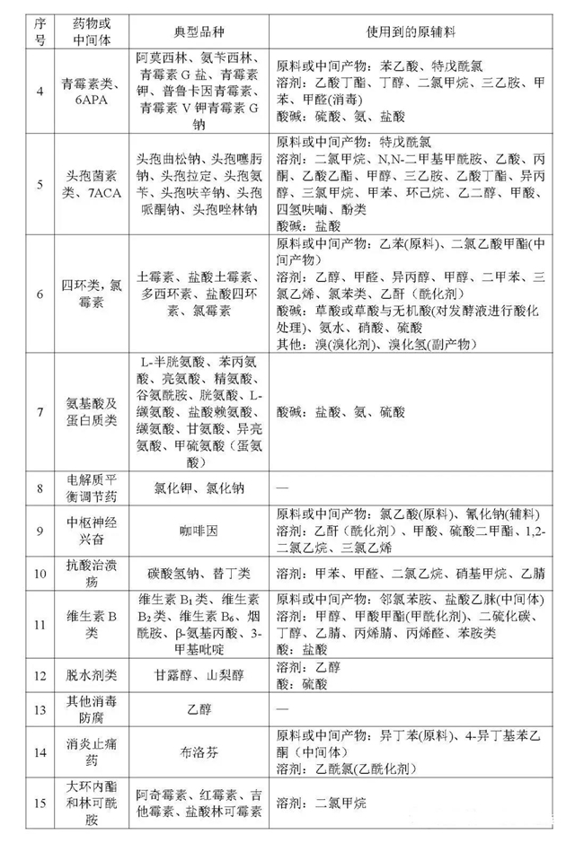制藥工業(yè)大氣污染物主要來源于化學(xué)原料藥的生產(chǎn)過程,而其前20大品種化學(xué)原料藥產(chǎn)量占24大類化學(xué)原料藥總產(chǎn)量的80%以上。因此,控制前20大品種所涉及到的揮發(fā)性物質(zhì)有重要作用。