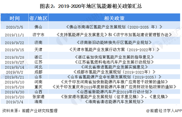 2020年氫能源政策匯總分析 長(zhǎng)三角氫走廊形成以點(diǎn)帶面的示范作用