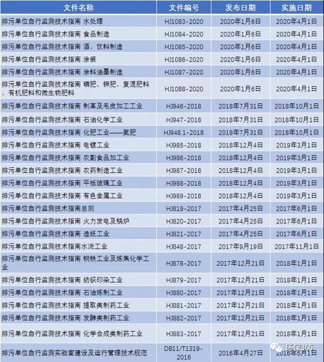 排污單位自行監(jiān)測技術(shù)指南匯總
