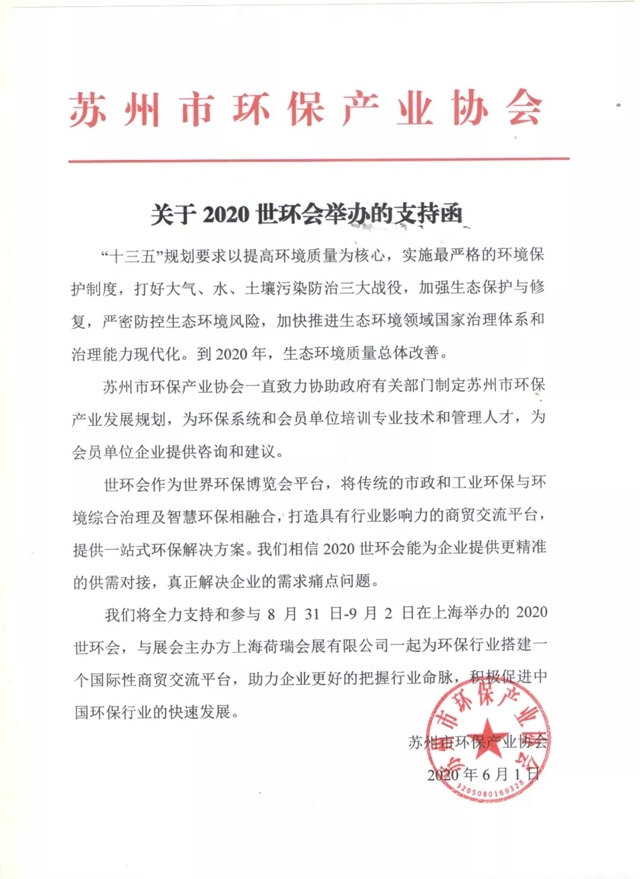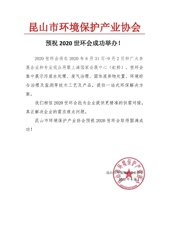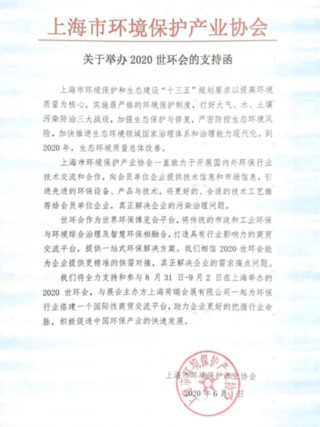 2020世環(huán)會確定將于2020年8月31日-9月2日在上海國家會展中心(虹橋)舉辦,各環(huán)保行業(yè)協(xié)會紛紛發(fā)聲支持2020世環(huán)會。