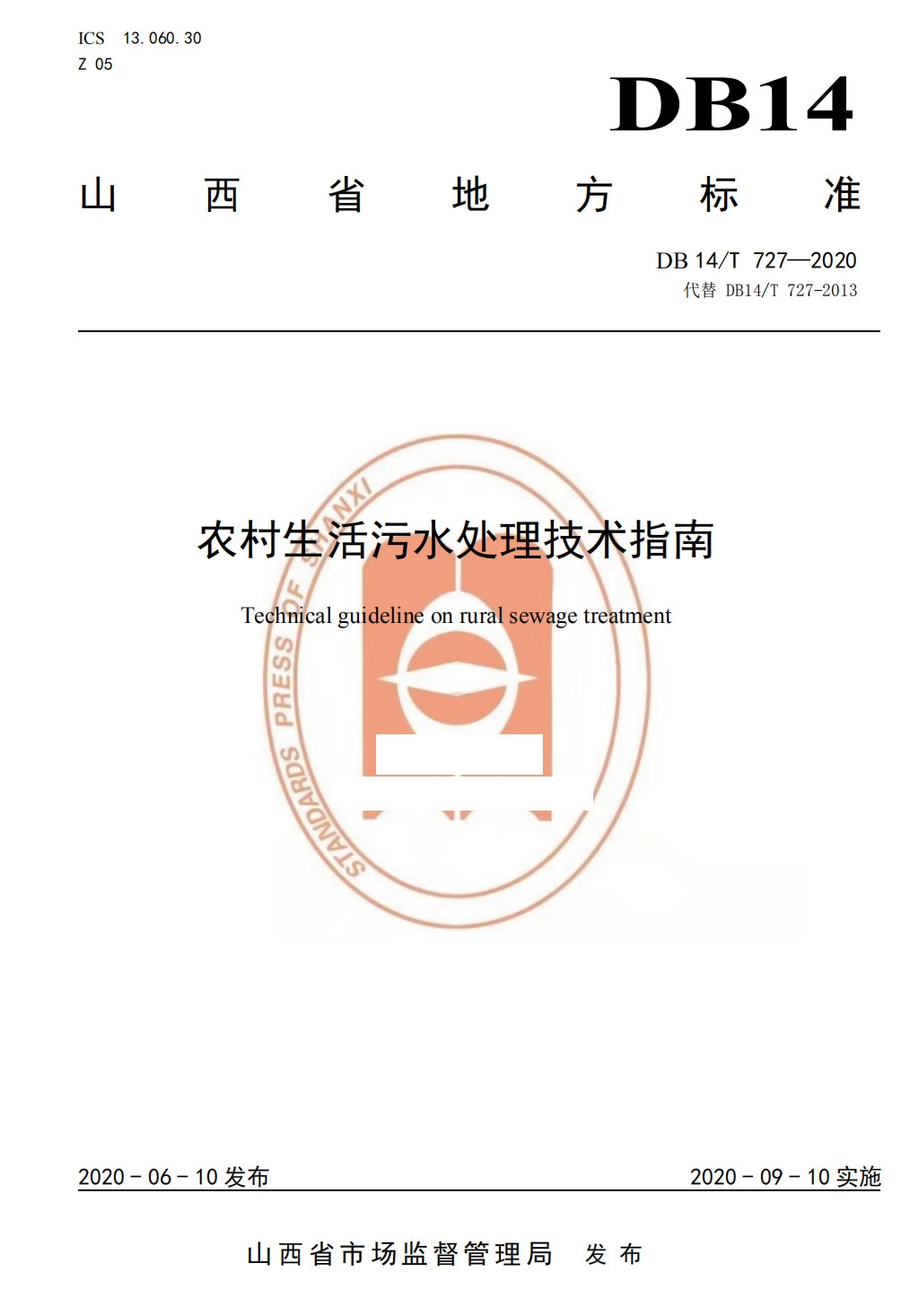 原標(biāo)題:山西省《農(nóng)村生活污水處理技術(shù)指南》(DB 14/T 727-2020)9月10起施行